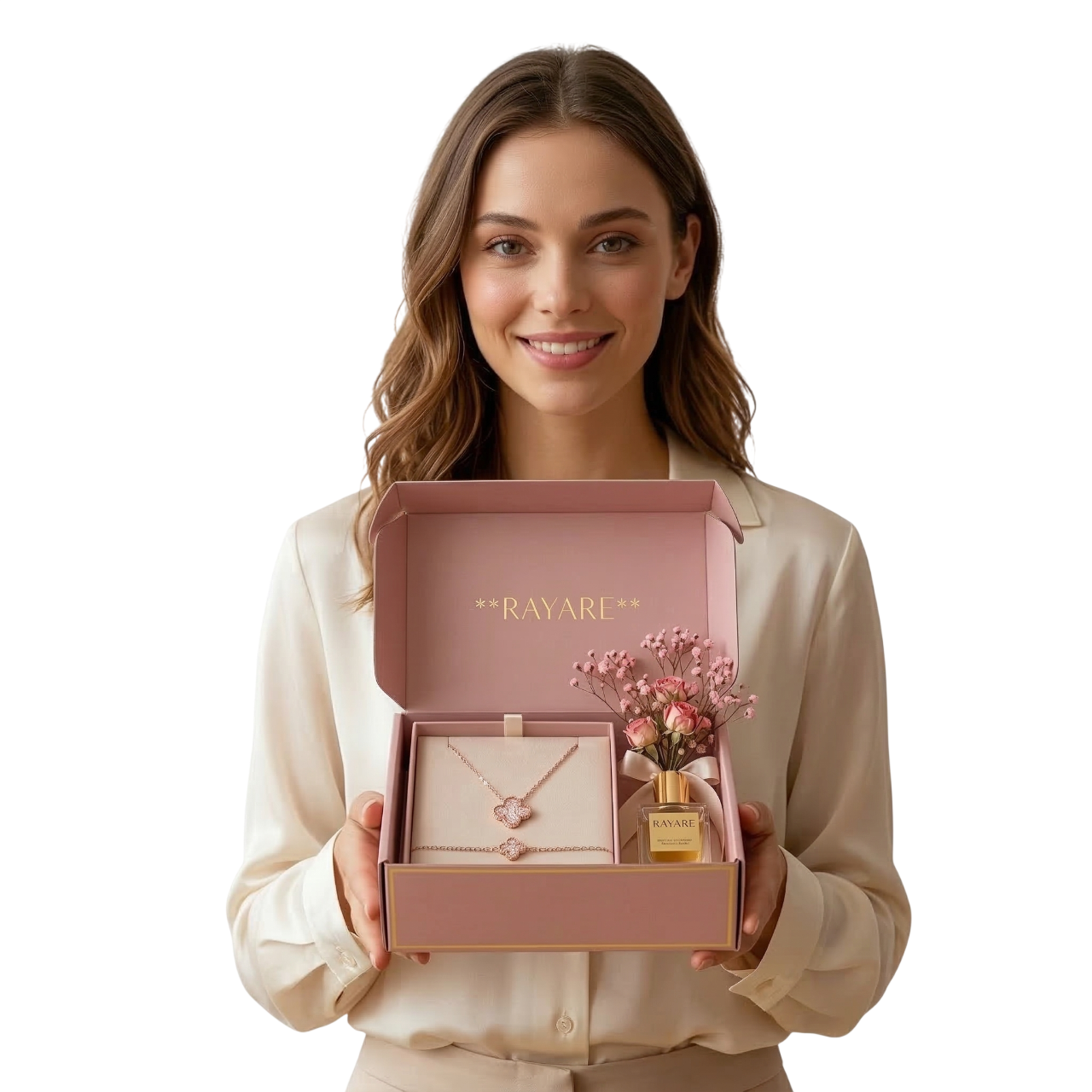 The hamper comes in a beautifully packed premium gift box, decorated with elegant fillers and packaging to create a luxurious unboxing experience. The goal is simple — when she opens the box, she instantly feels loved and appreciated.
